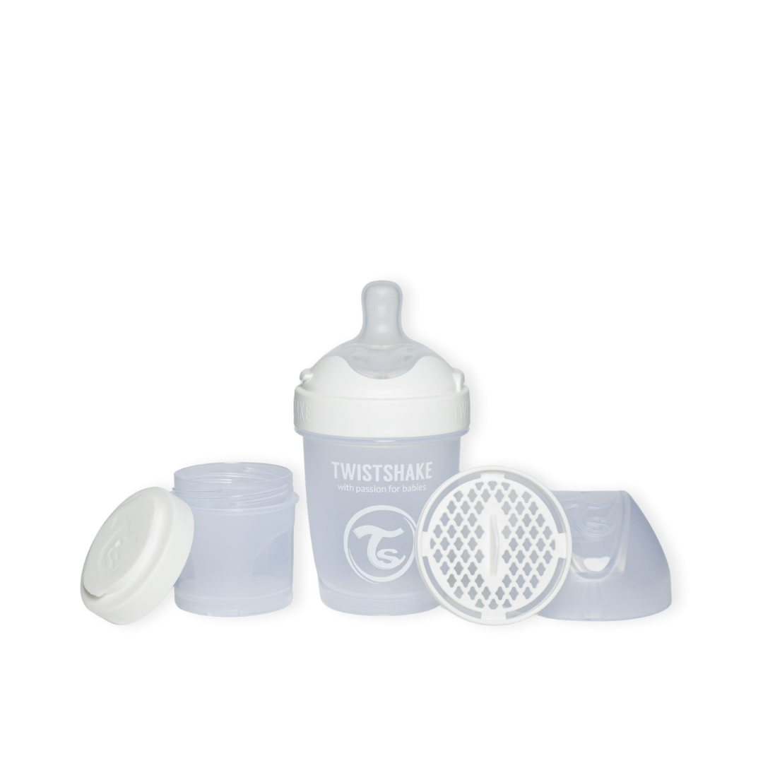 Incluye: Mamadera con tetina anti-cólicos + dosificador + rejilla anti grumos