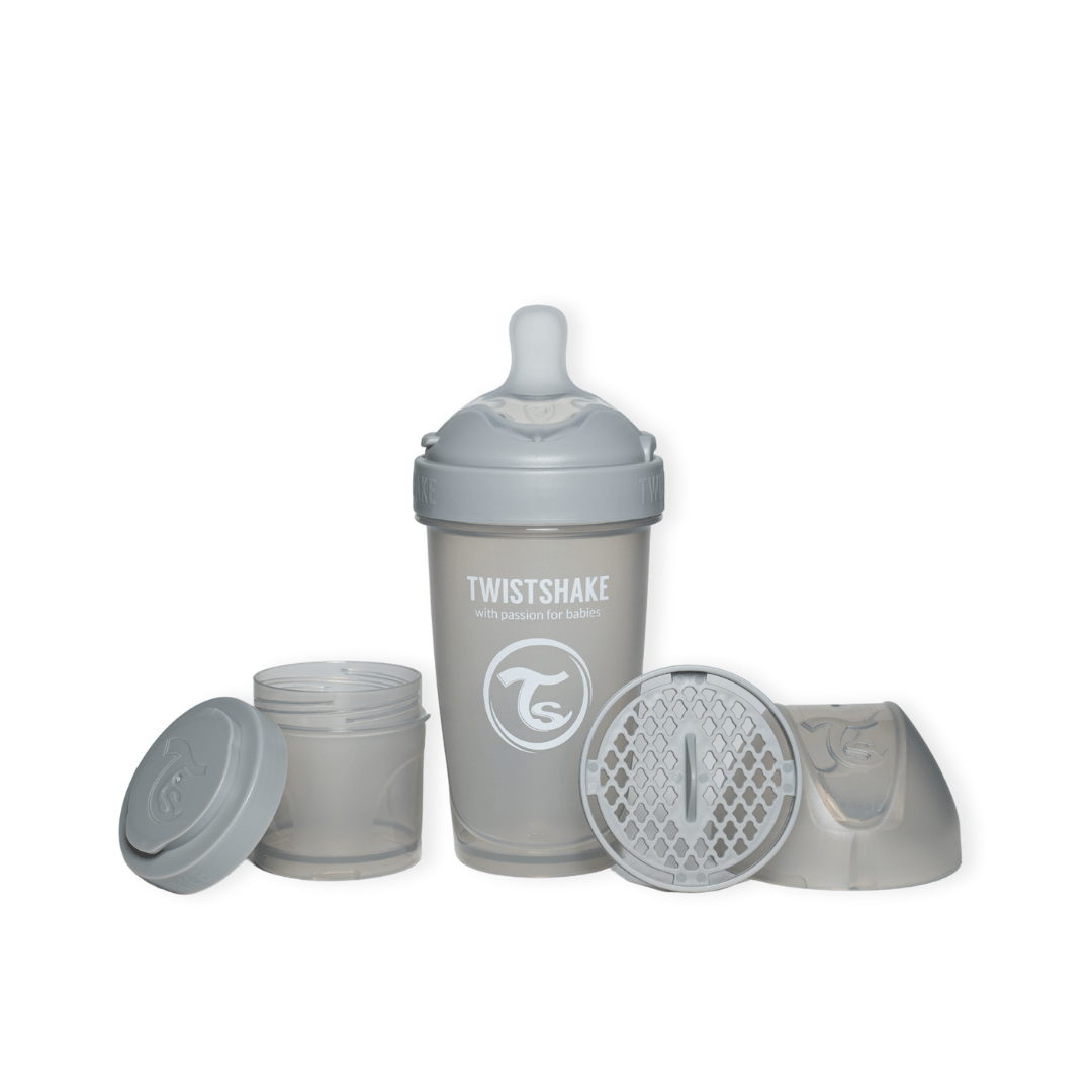 Incluye: Mamadera con tetina anti-cólicos + dosificador + rejilla anti grumos