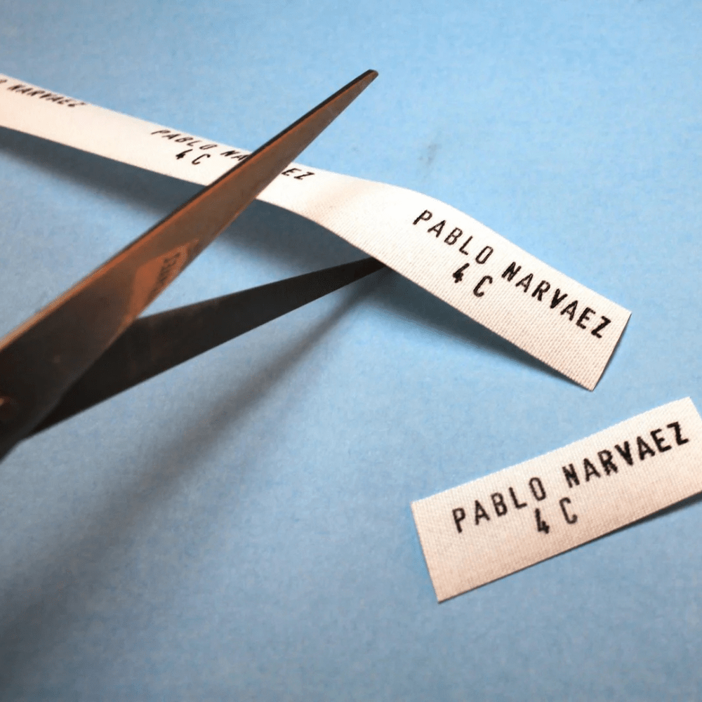 Corta la cinta termoadhesiva al tamaño de la etiqueta o nombre que deseas fijar.