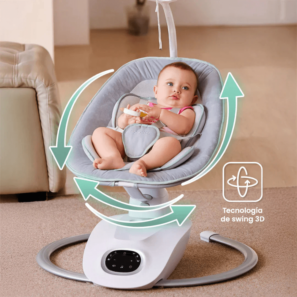 Dale a tu guagua la combinación perfecta de comodidad y diversión con el Columpio Eléctrico 3D Momcozy Coco Sway. Su innovador movimiento tridimensional mece suavemente al bebé de forma natural, como un abrazo, ayudando a calmarlo, relajar sus músculos y mejorar sus siestas.