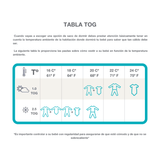 Su tejido en algodón TOG 1.0, es ideal para temperaturas ambiente dentro de la habitación entre 20º - 24º C.