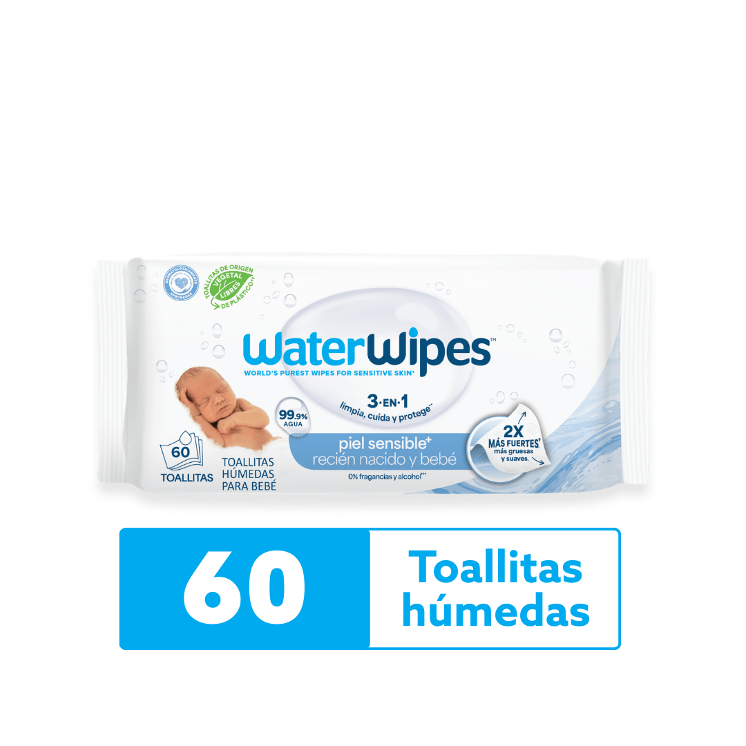 Las nuevas y mejoradas toallitas húmedas WaterWipes Piel sensible: Recién nacido y bebé, son reconocidas como las toallitas más puras del mundo para pieles sensibles. Están diseñadas para ofrecer una limpieza profunda y cuidar y proteger la delicada piel de tu bebé.