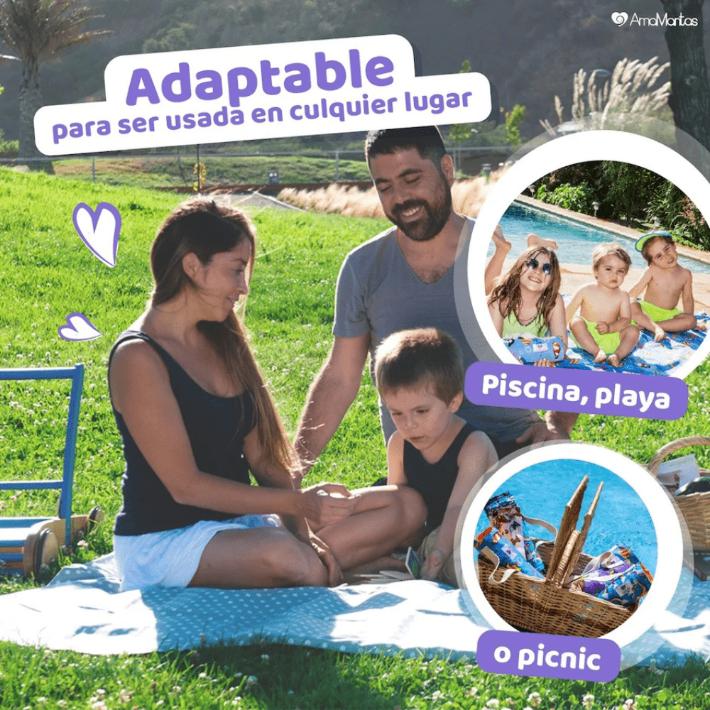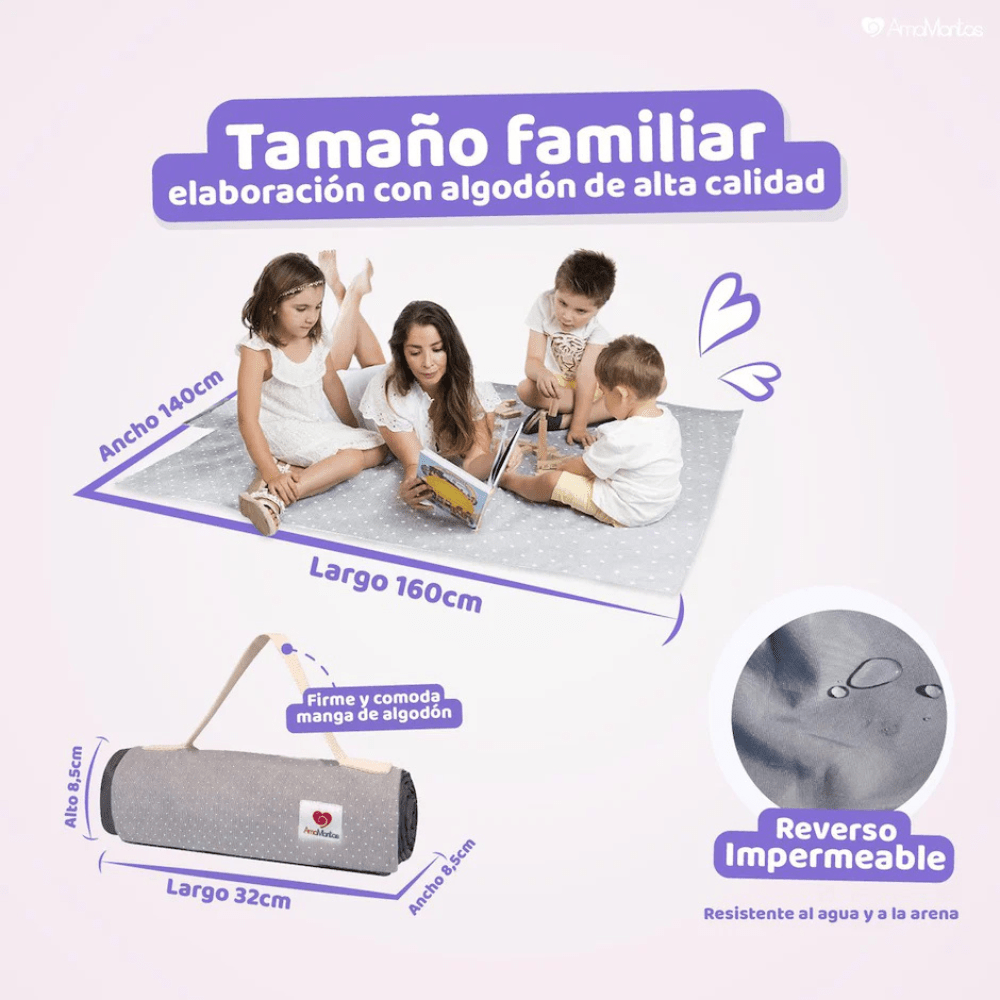 Con la manta impermeable multifuncional de Amamantas, podrás compartir momentos únicos y divertidos con tu bebé y toda la familia. Su suavidad y comodidad garantizan una experiencia agradable para todos, mientras disfrutan de picnics, juegos en el parque o días de playa.