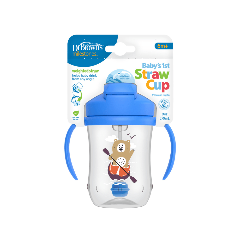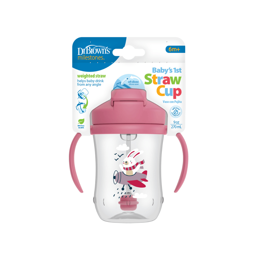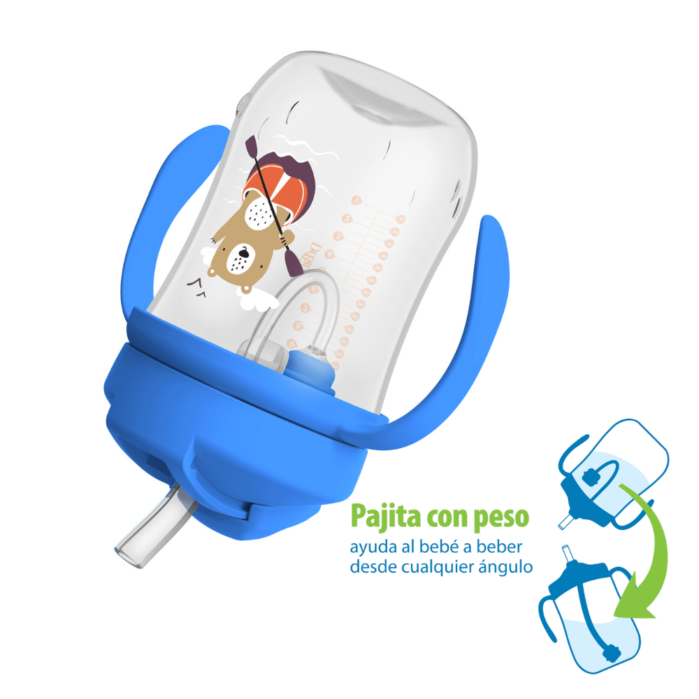 Acompaña a tu guagua en una de las etapas más importantes de su desarrollo: aprender a tomar líquidos de forma independiente. El vaso con asas y pajita Dr. Brown’s está especialmente diseñado para bebés desde los 6 meses, ayudándolos a transitar de inclinar el vaso boca abajo a beber en posición vertical, de manera natural y segura.