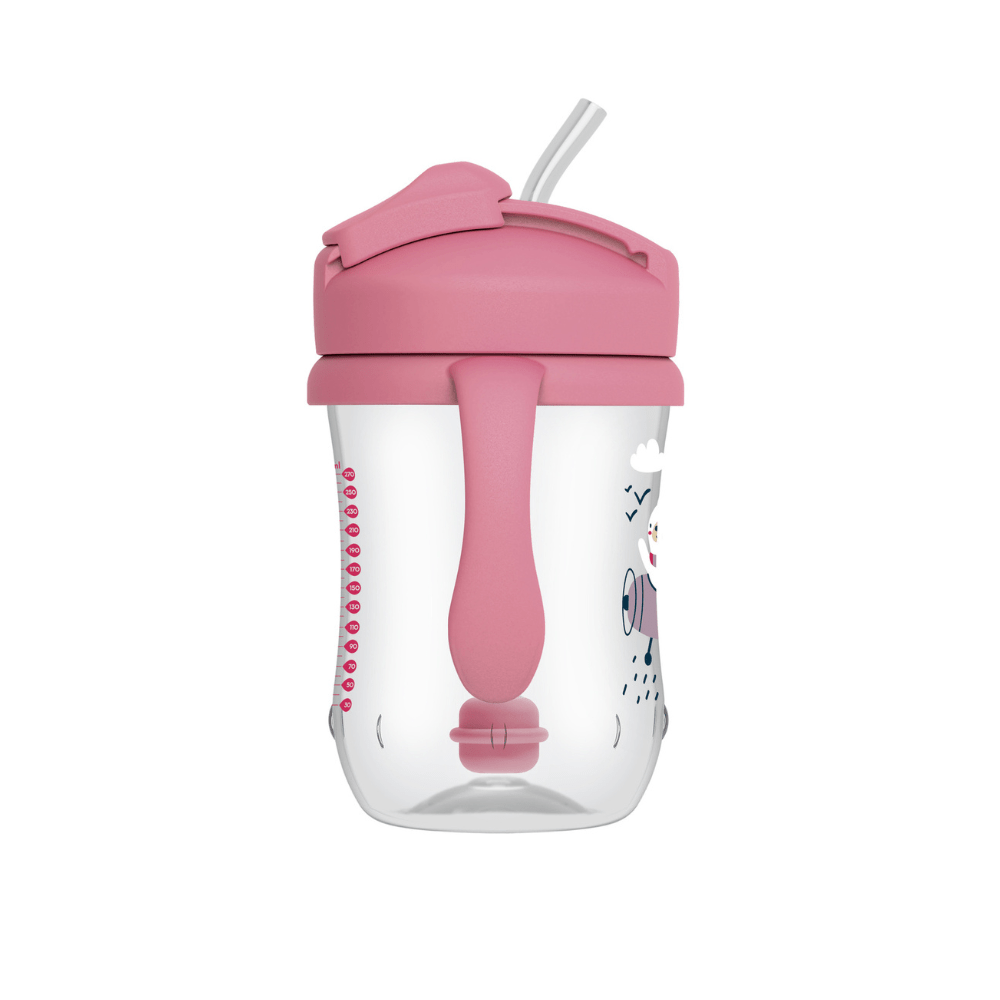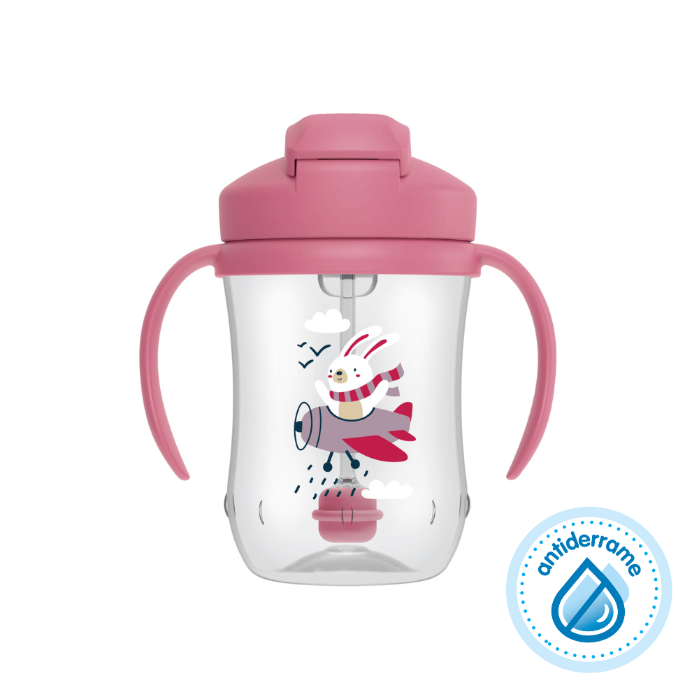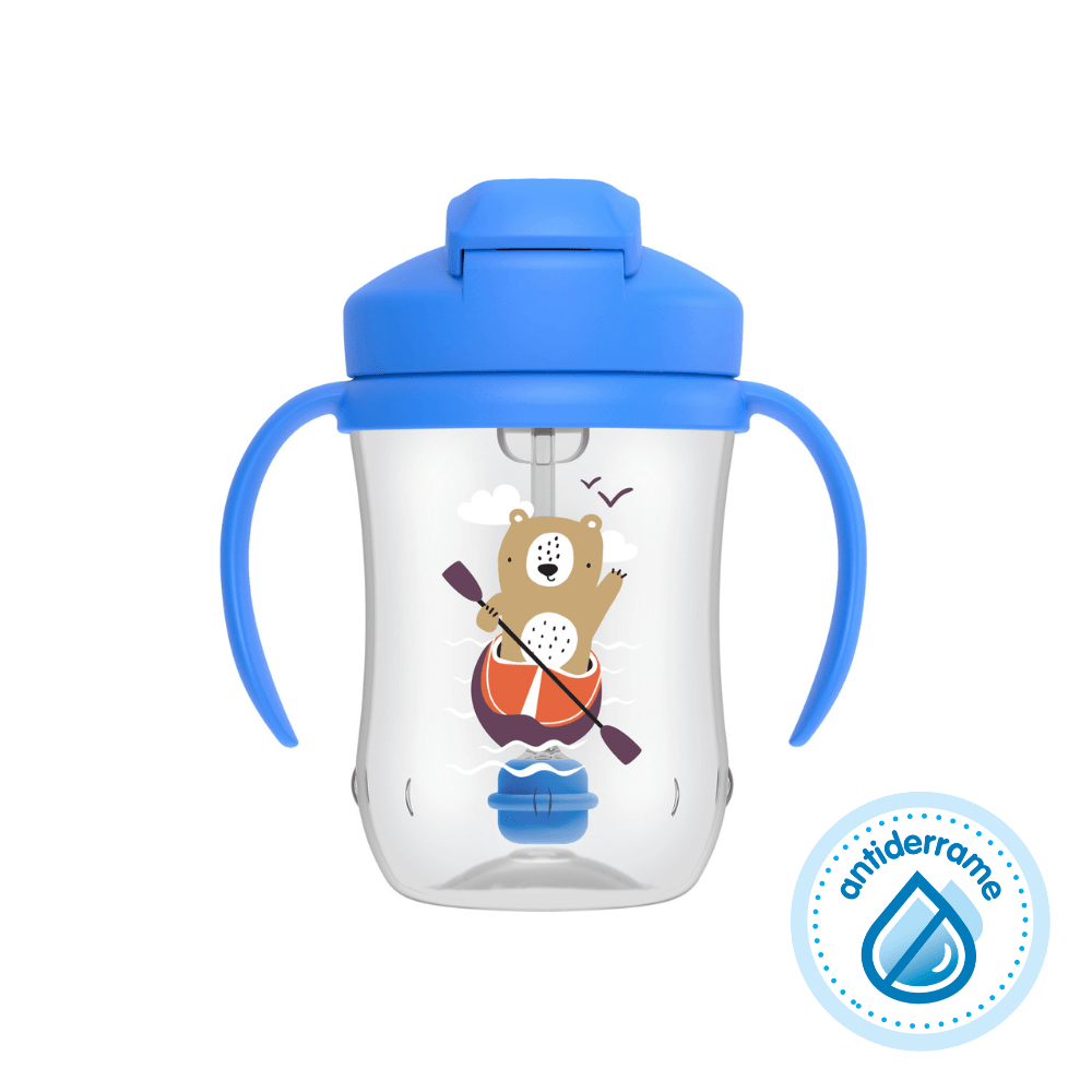 Gracias a su sistema antiderrame, el bebé puede tomar desde cualquier ángulo sin provocar goteos ni derrames, entregando mayor tranquilidad tanto en la casa como fuera de ella. Sus asas ergonómicas facilitan el agarre de manitos pequeñas, fomentando la autonomía desde temprano.